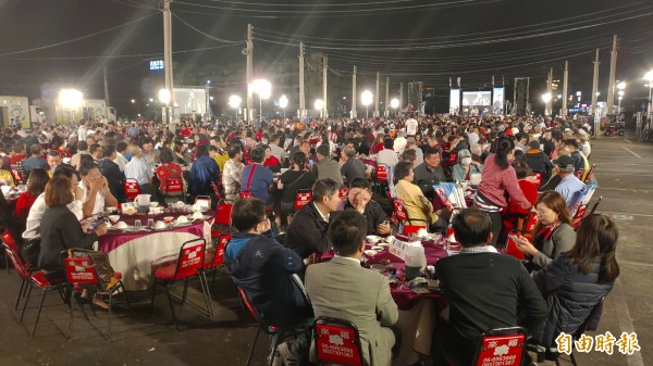 謝龍介晚上在北區花園夜市舉辦募款餐會,席開200桌。(記者蔡文居攝)