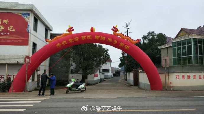 片在微博上瘋傳,鄉親們更準備紅色大拱門恭迎歐陽娜娜回鄉,畫面公開後,連中國網軍