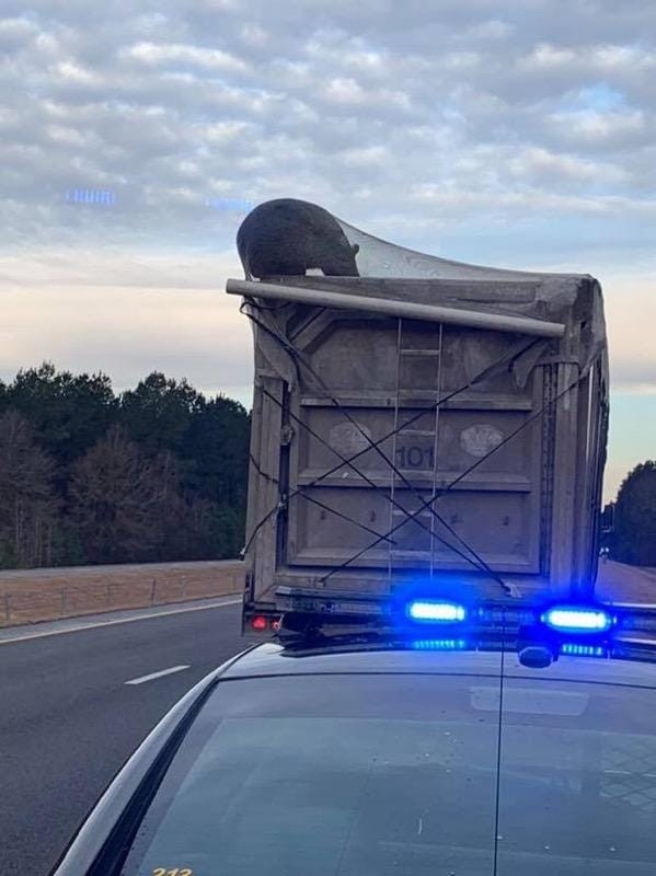 警方到場後將垃圾車攔停,駕駛這時才知道後車斗內有一位貪吃的不速之客,將車輛停妥