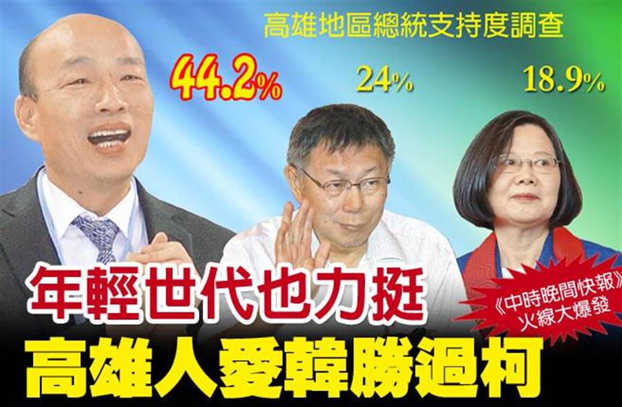 《中時晚間快報》年輕世代也力挺 高雄人愛韓勝過柯