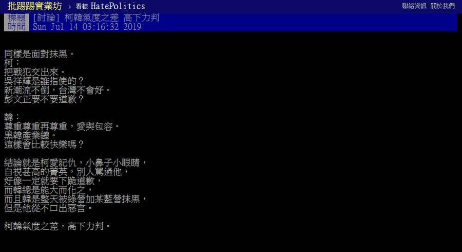 [新聞] 面對抹黑 網:韓柯氣度高下立判