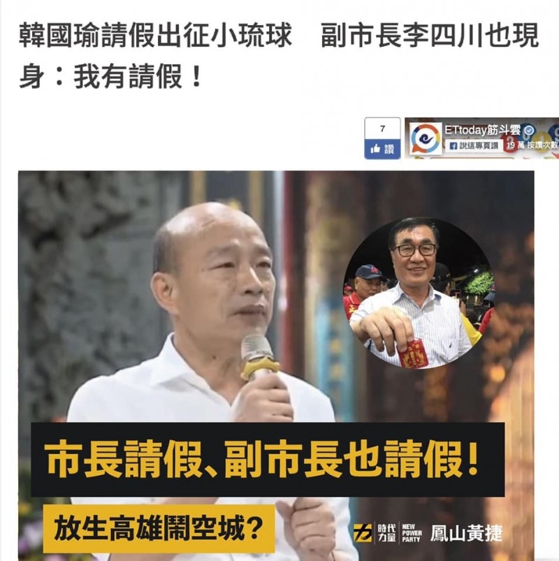 [新聞] 高市正、副市長都「請假」去小琉球 白眼女神說話了