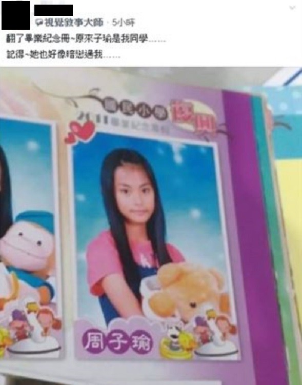 原來子瑜是我同學……」照片中周子瑜的皮膚雖然較現在黝黑,但水汪汪大眼和精緻的五