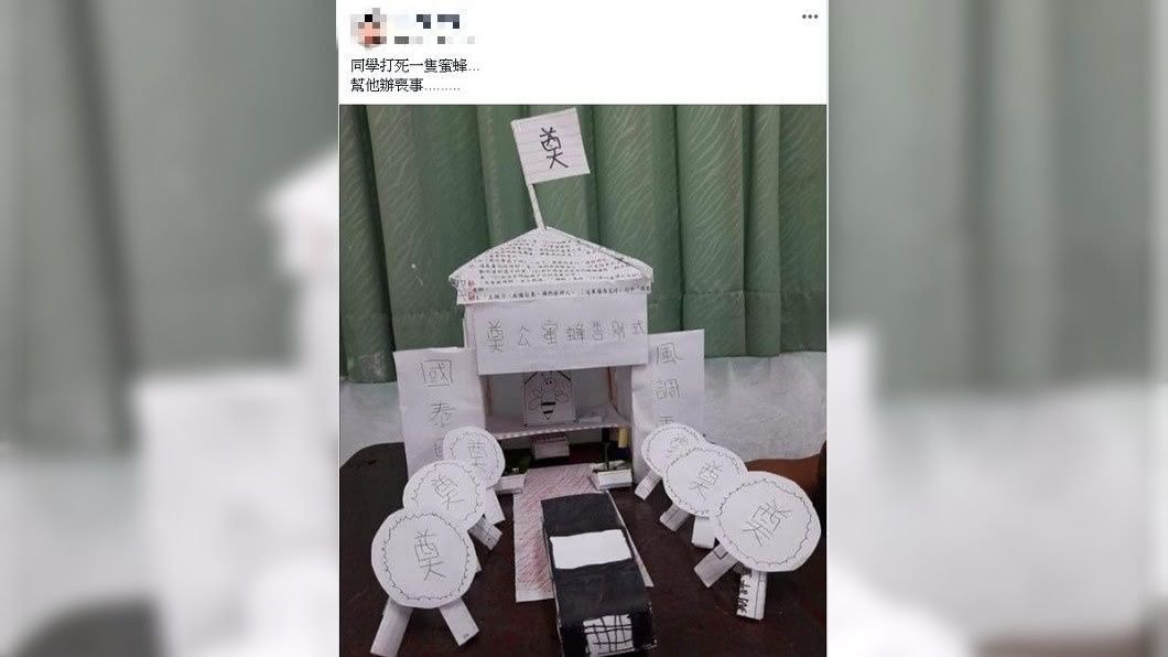 ,風調雨順」。網友發文寫著,「同學打死一隻蜜蜂,幫牠辦喪事!」這下才真相大白。