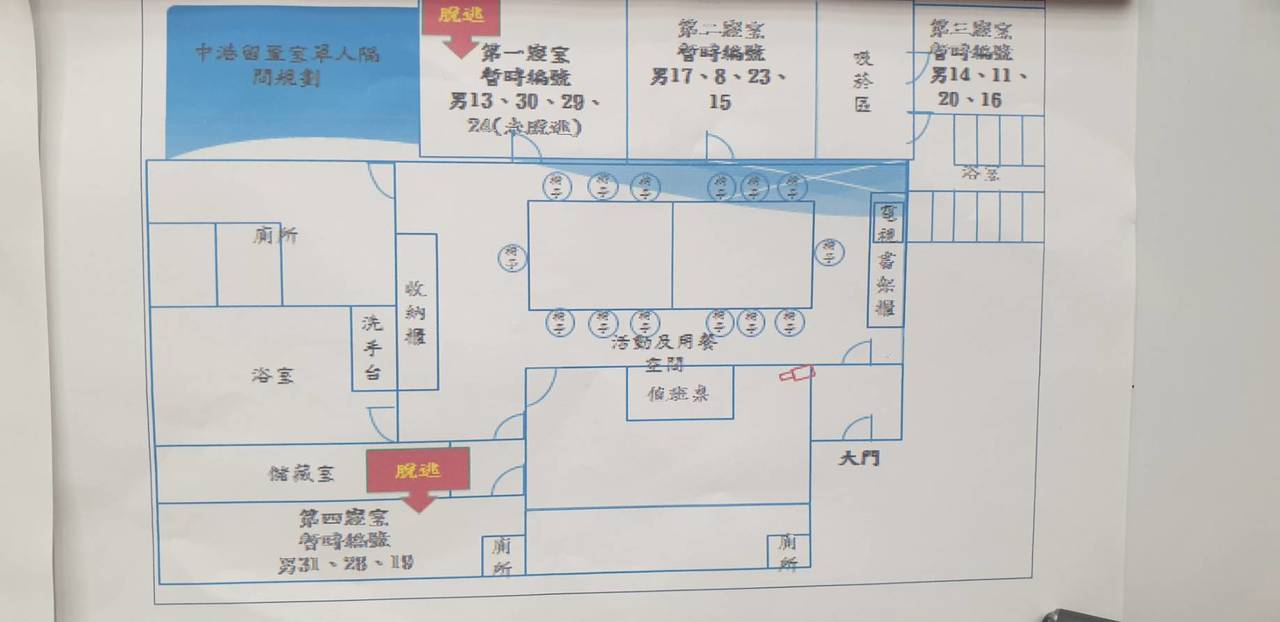 其中第一和第4房共收容7人,經研判,他們昨晚破壞留置室的窗戶鐵條,從氣窗鑽出逃逸