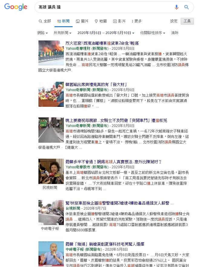 3.搜尋「高雄 議員 撞」
