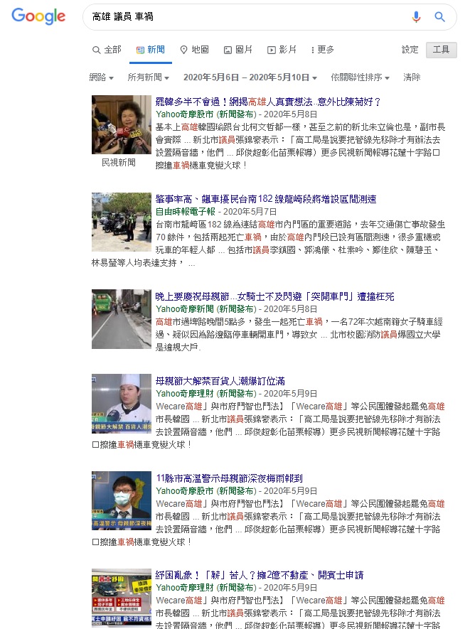 2.搜尋「高雄 議員 車禍」
