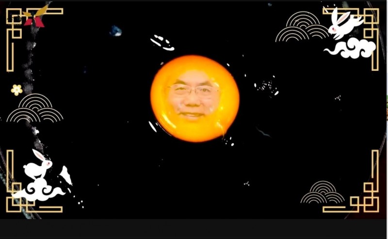 透過網路社群新上架1支短片傳達心意,只見他瞬間打破1顆蛋,圓圓蛋黃秒變「滿月」,