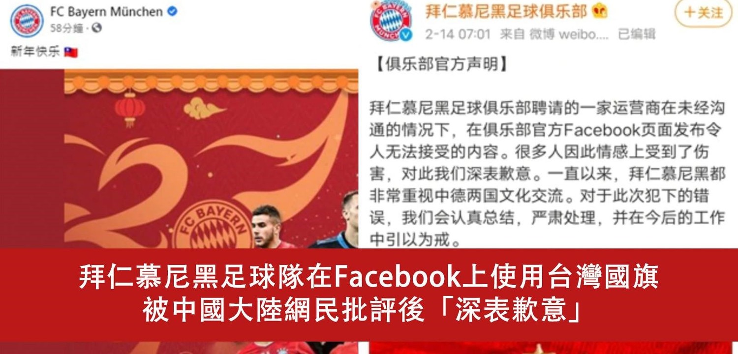 拜仁慕尼黑無視玻璃心碎粉專再放中華民國國旗 網:頂尖「乳滑」球會