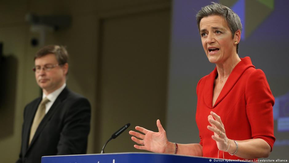 塔格 (Margrethe Vestager) 和另一位主管貿易的副主席東布羅夫斯基斯 (Valdis