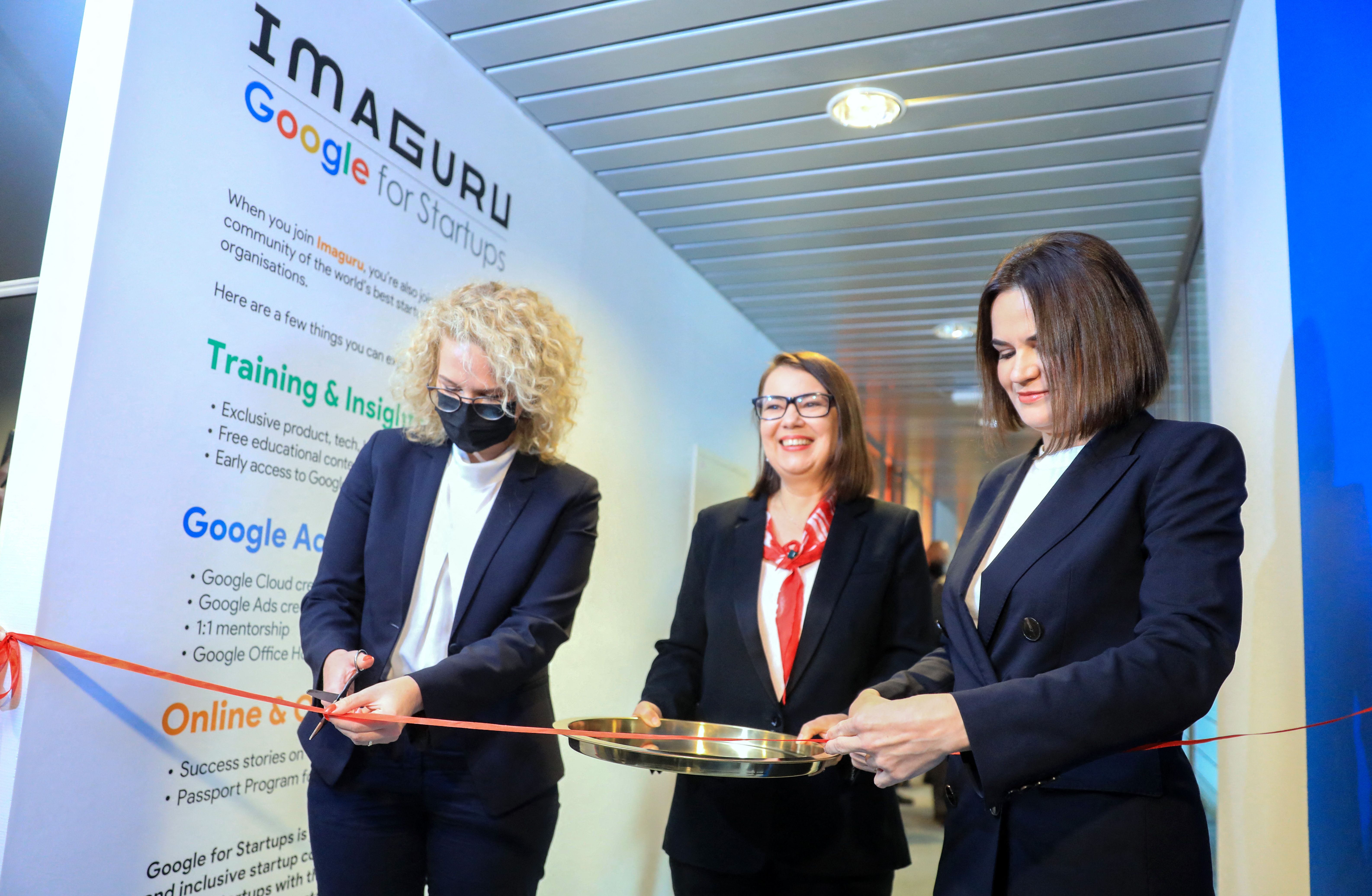 左為立陶宛經濟暨創新部長奧茉娜(Ausrine Armonaite)。(PETRAS MALUKAS/AFP via