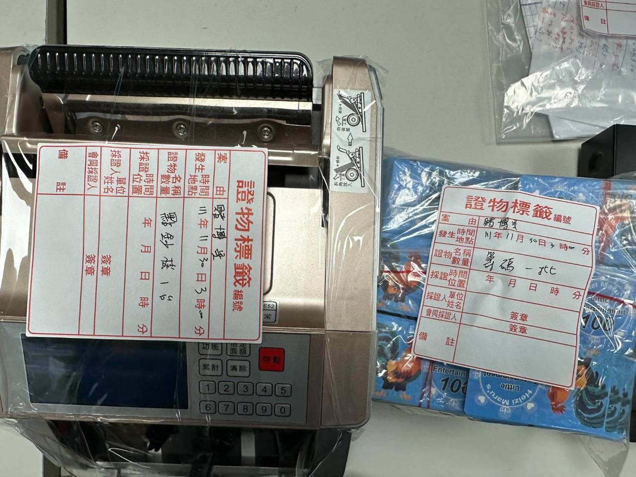 桃園警方表示,賭場查扣天九牌一副、賭資9萬7千餘元和大量籌碼,43歲的陳姓賭場負責