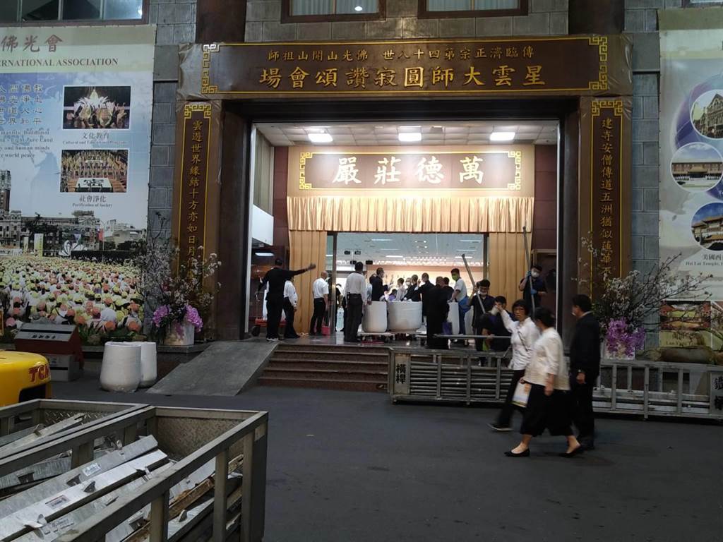 佛光山於今天傍晚開始積極布置星雲法師圓寂頌讚典禮相關事宜,工作人員忙進忙出,於
