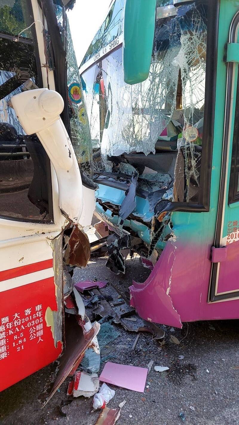 精神不濟衝到對向車道,不巧與58歲朱男駕駛的空校車碰撞,2車車頭均毀損碎裂,車上
