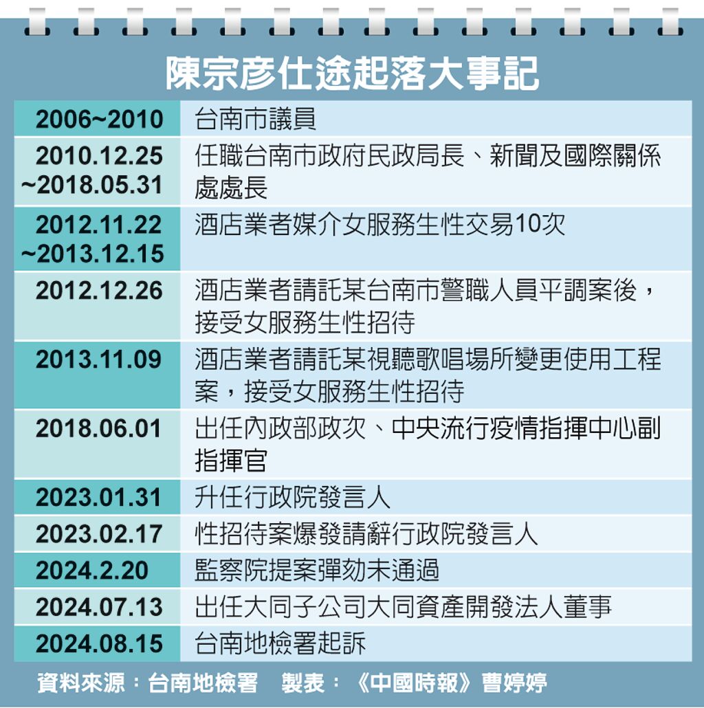 賴清德嫡系子弟兵陳宗彥過去曾任台南市議員、南市府新聞及國際關係處長,民政局長等