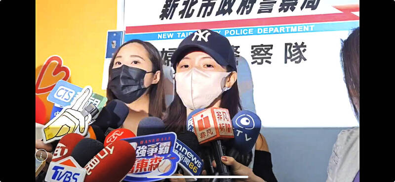 李多慧(右)昨下午現身新北市警察局婦幼隊製作筆錄,說明懷疑遭跟蹤經過,淚灑警局