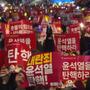 在野陣營議員們,也持續聚集在國會大廈,高舉標語敦促執政黨議員加入彈劾行列。