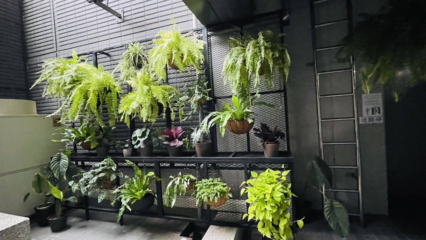 2樓東側休息區、3樓交誼廳及討論室、2至4樓東側陽台綠美化,未包含分署長辦公室。圖
