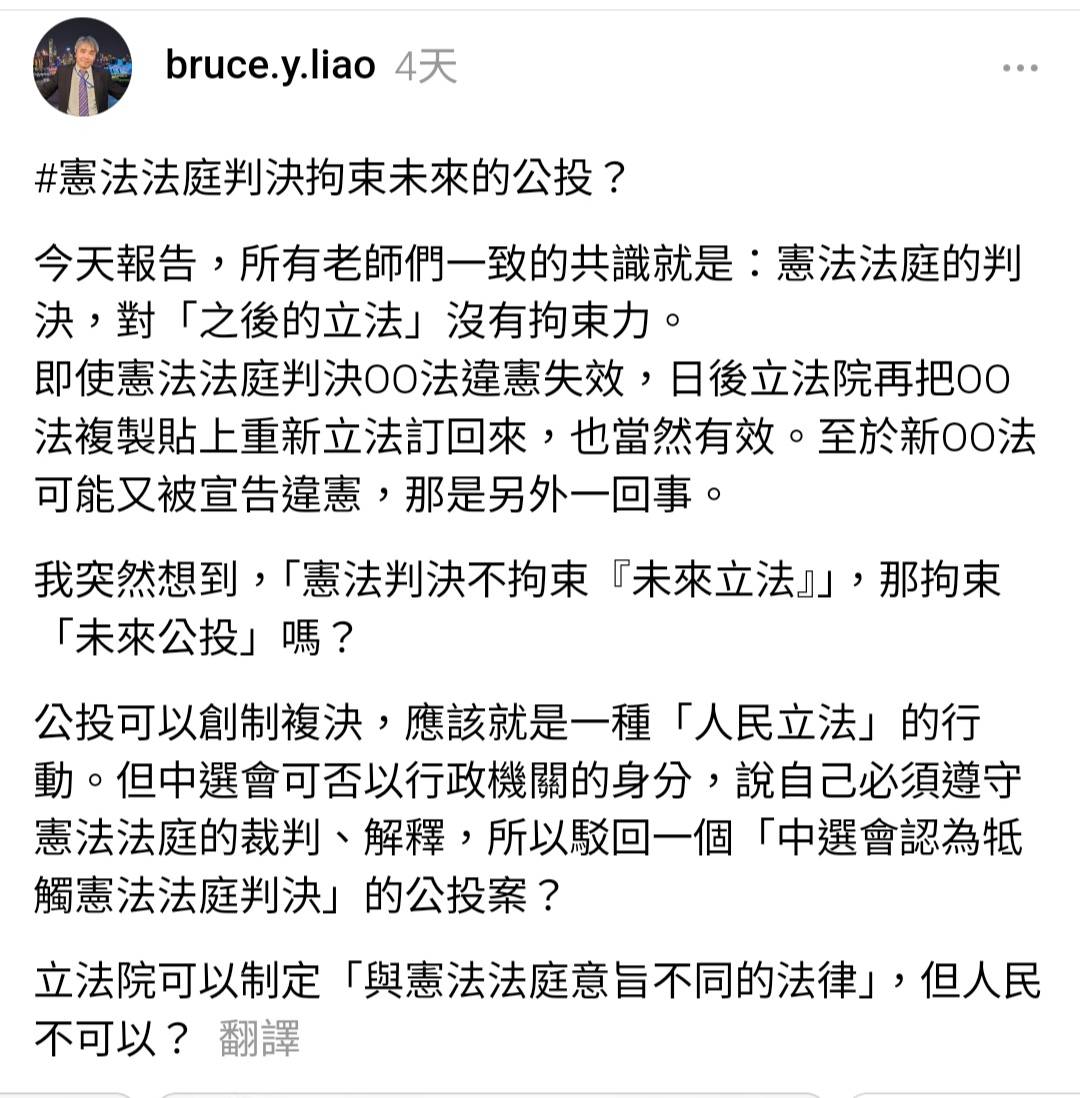 政大法學院廖元豪說學者們的看法是憲法法庭的判決,對「之後的立法」沒有拘束力。