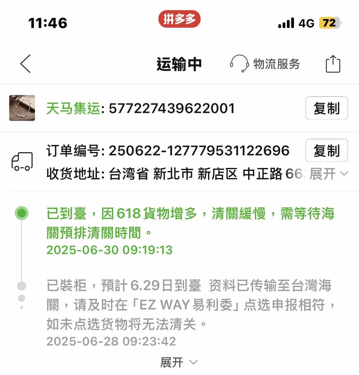 文盲?我的問題是618的貨 現在還在卡