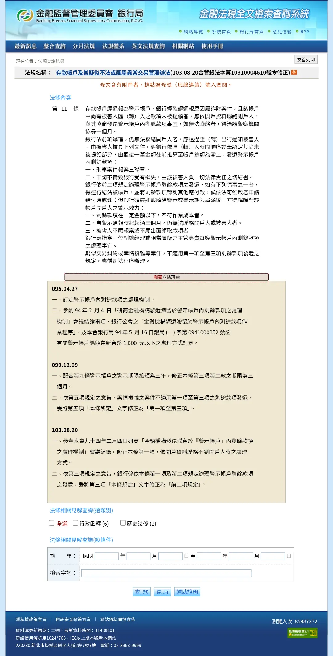自8月20日起,針對警示帳戶且存款餘額低於新台幣1000元時,銀行將暫停該帳戶所有交