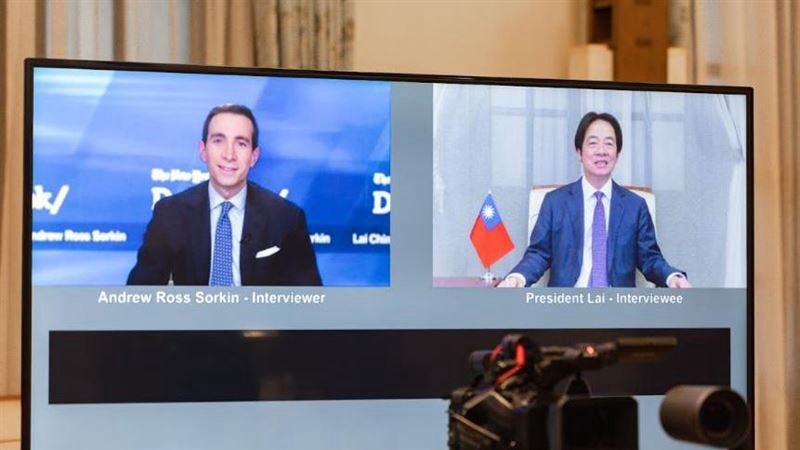 賴清德登上紐時DealBook高峰會,透過視訊方式接受專訪。(圖/總統府提供)