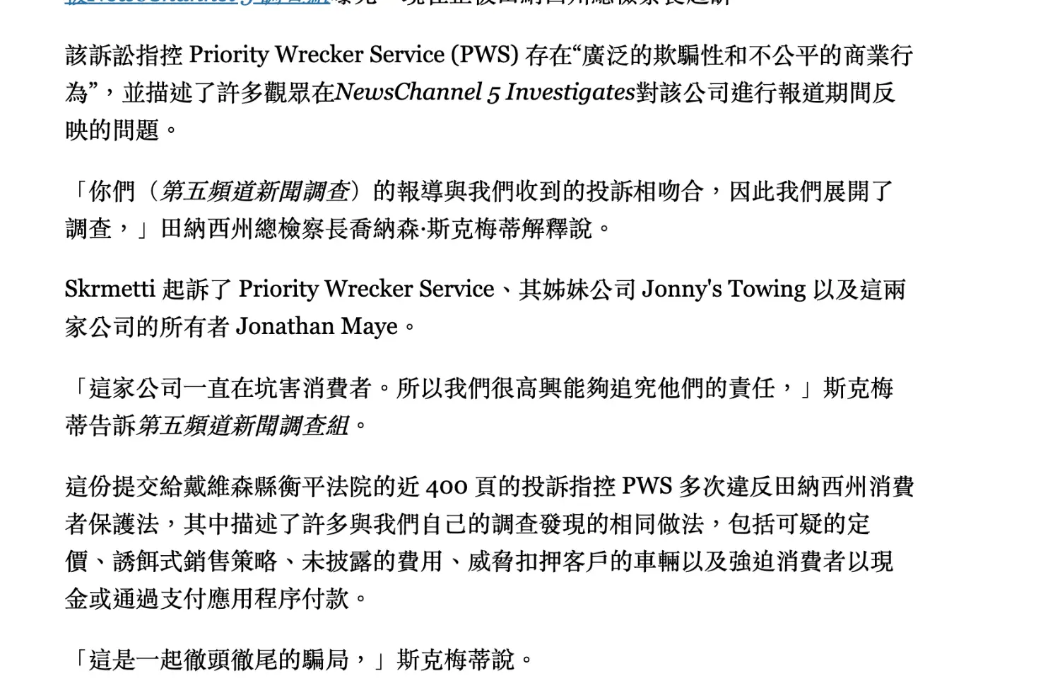 美國田納西州檢察長主動啟動調查,隨後起訴這兩家業者