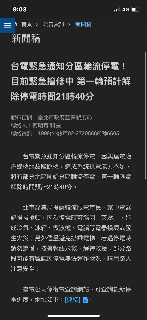 打去電力公司說整區都停了