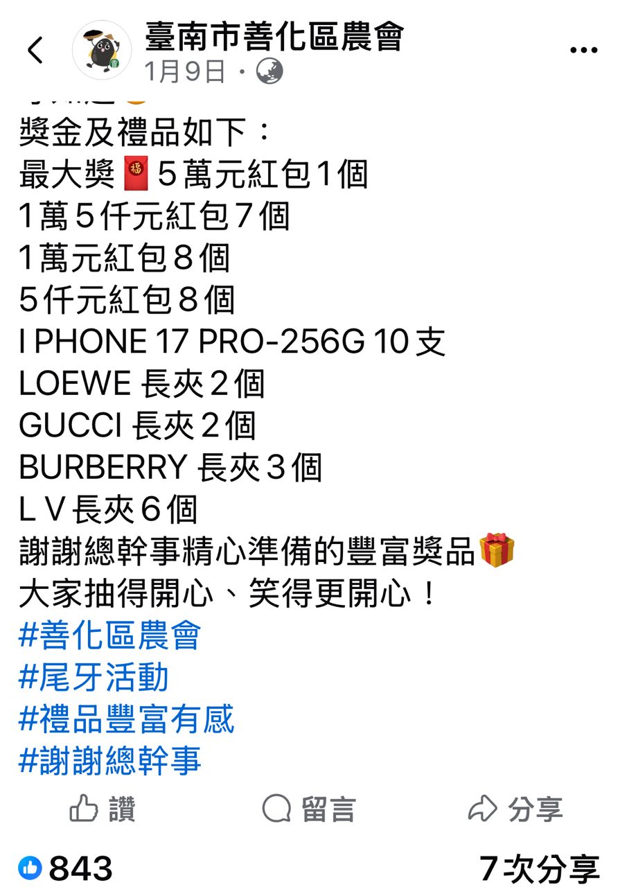 安安 中午看到新聞 台南善化農會