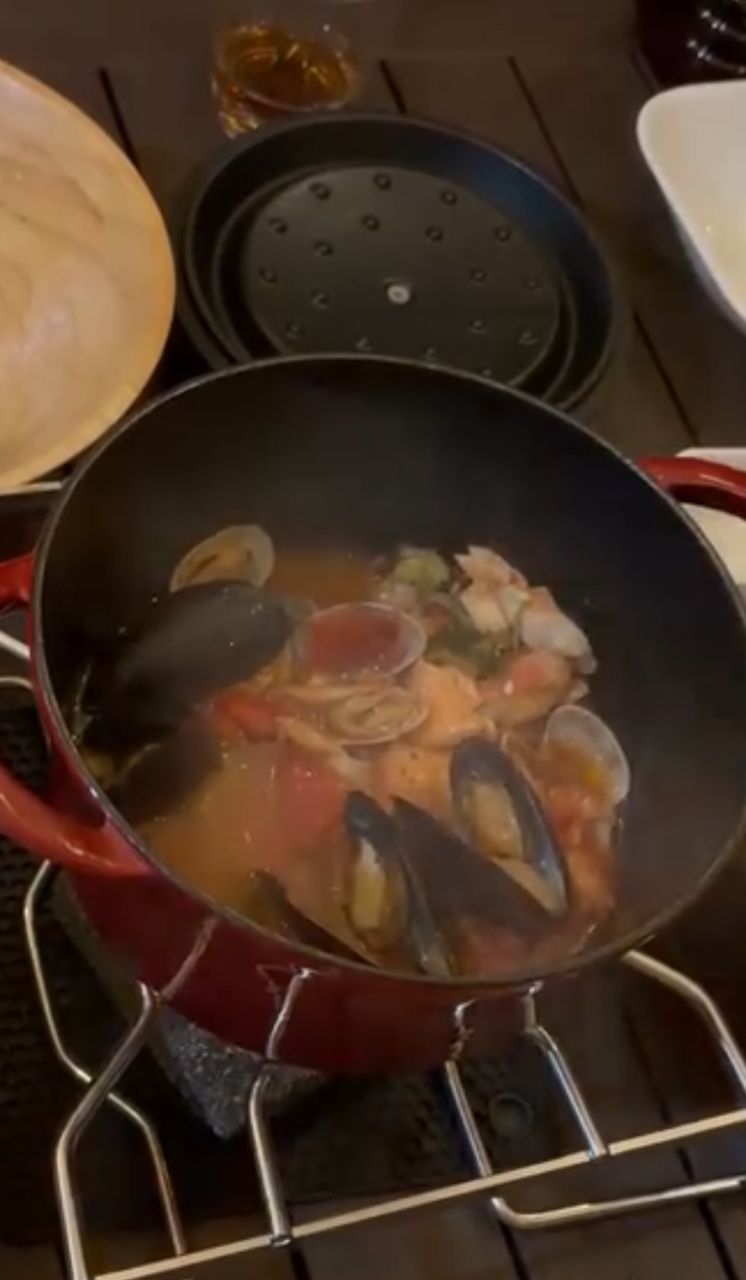 一整鍋都是貝類的湯