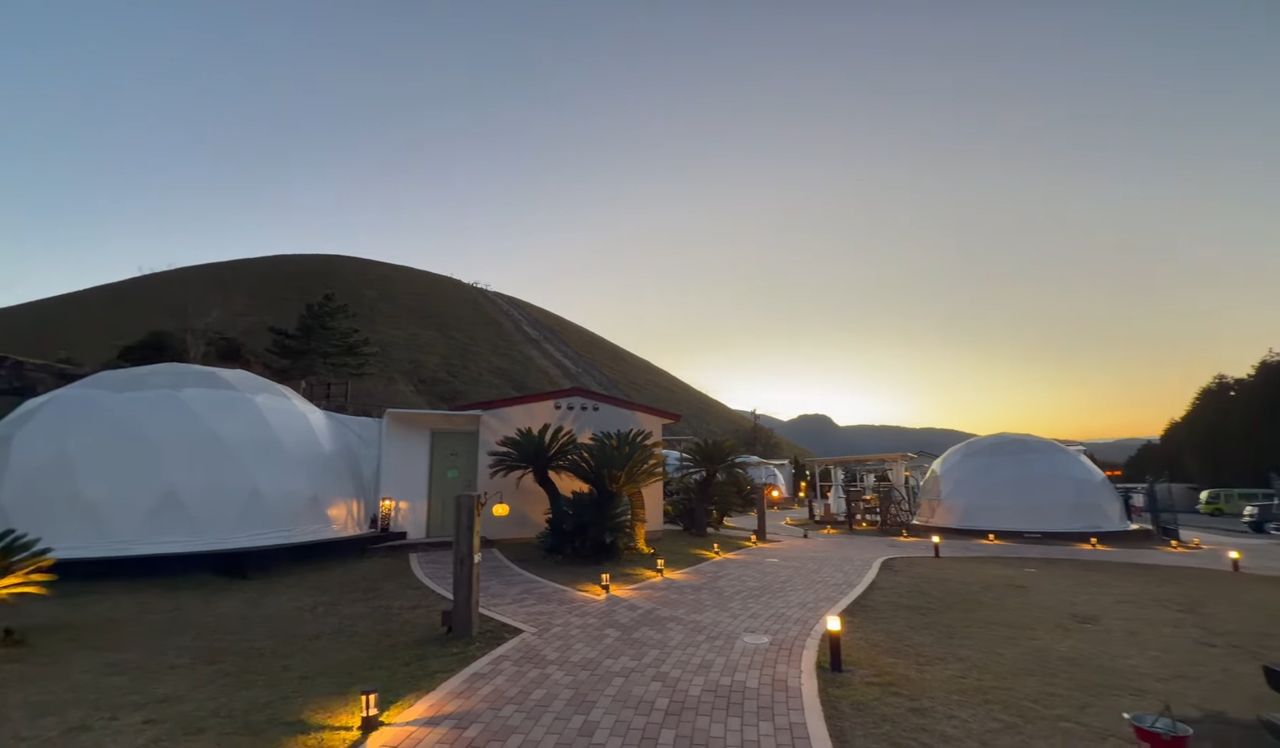 晚上住大室山下的豪華露營區一晚一萬含早晚餐
