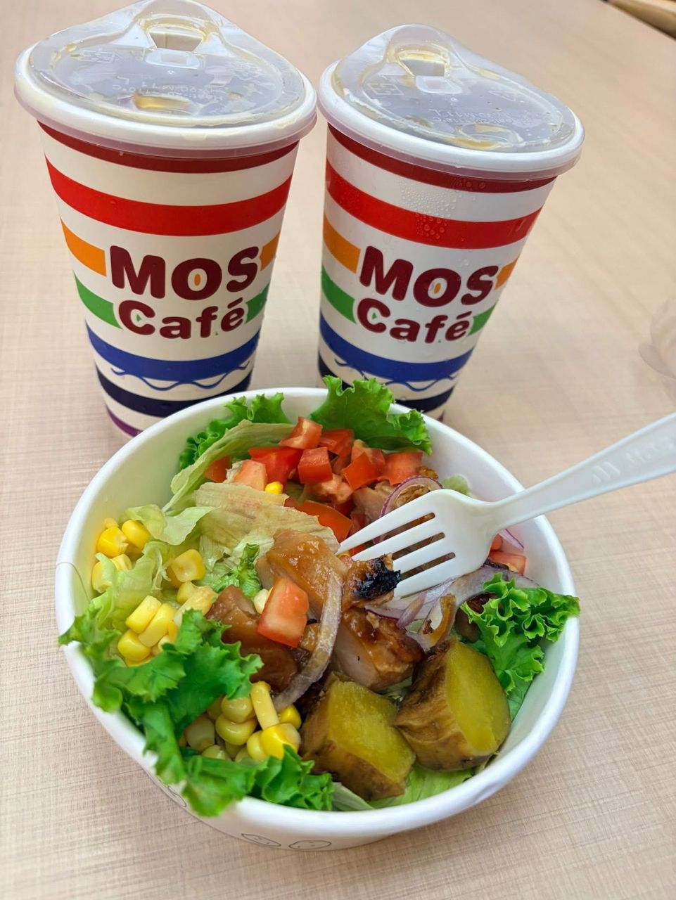 民宿沒有早餐所以買個沙拉加飯糰跟無調整的無糖豆漿