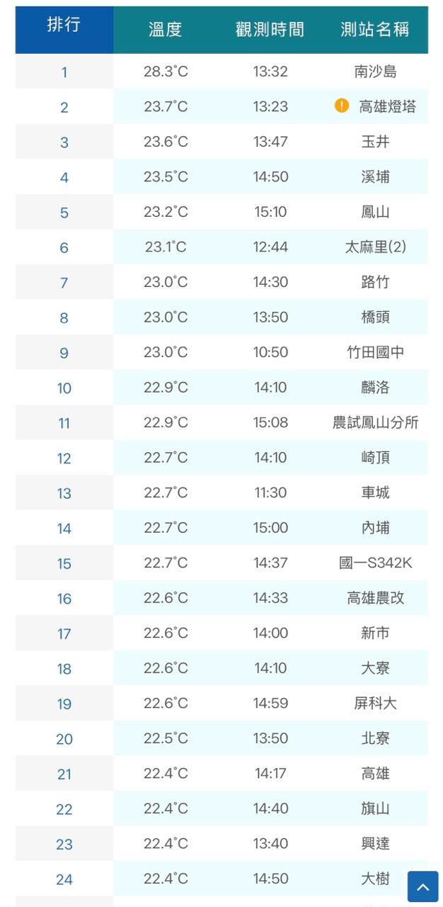 如題,今天台北最高氣溫只有12度到13度,但是遠在南方的高雄氣溫卻有22度,幾乎都可