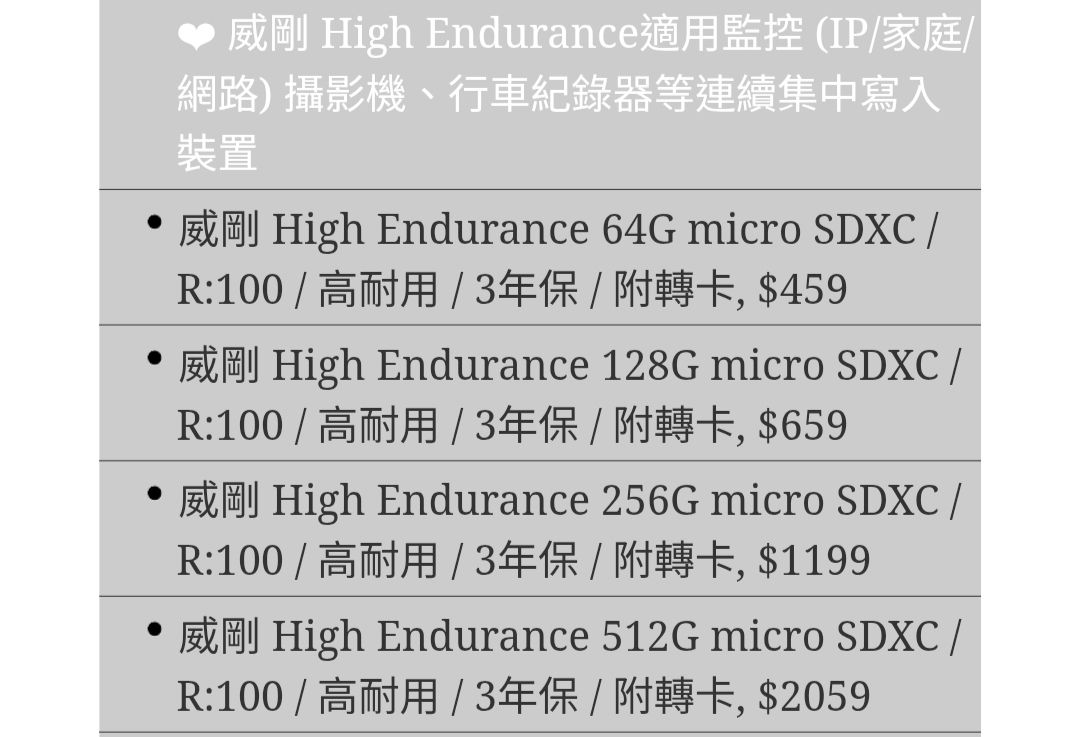 高耐用SD卡都差不多,也沒終保