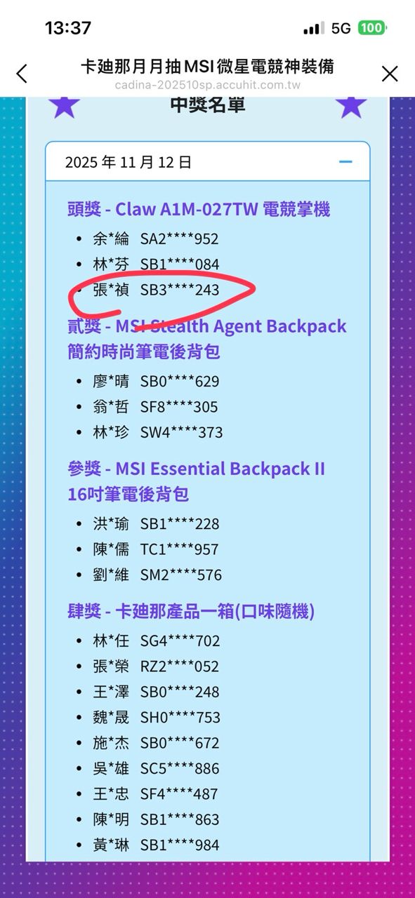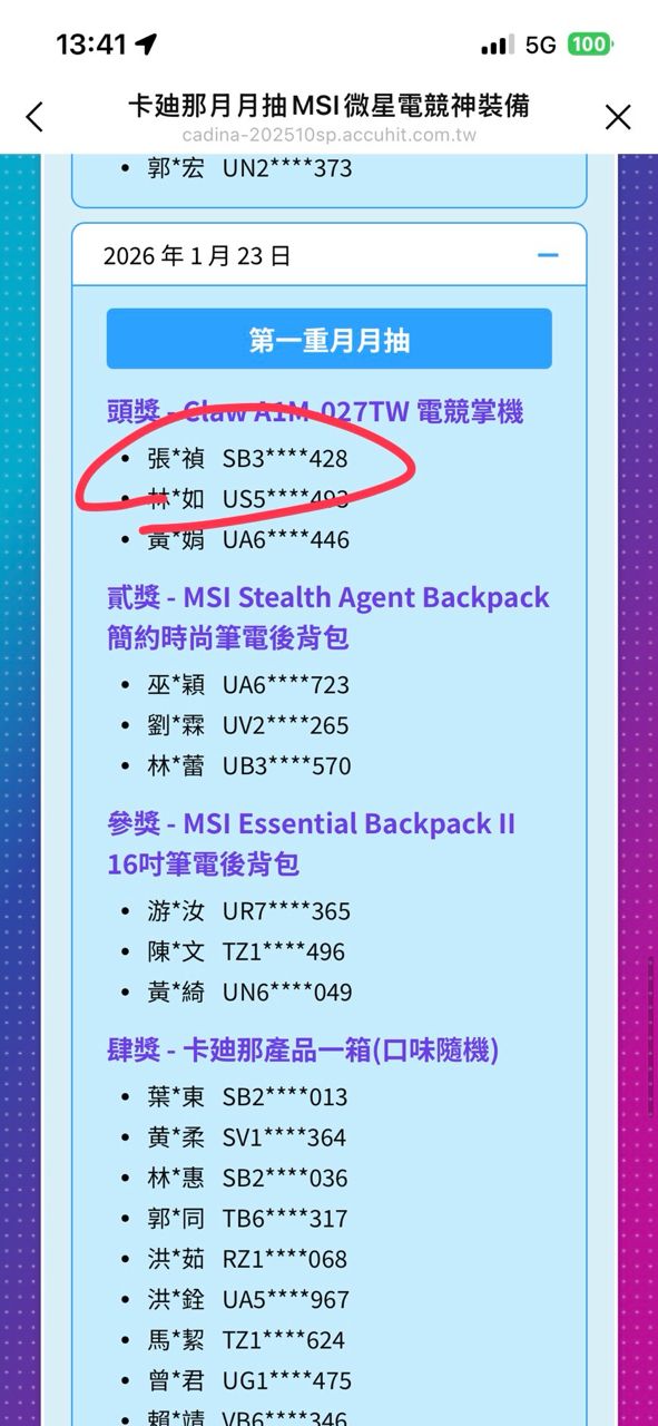 想不到心血來潮查一下卡迪那最近的抽獎。