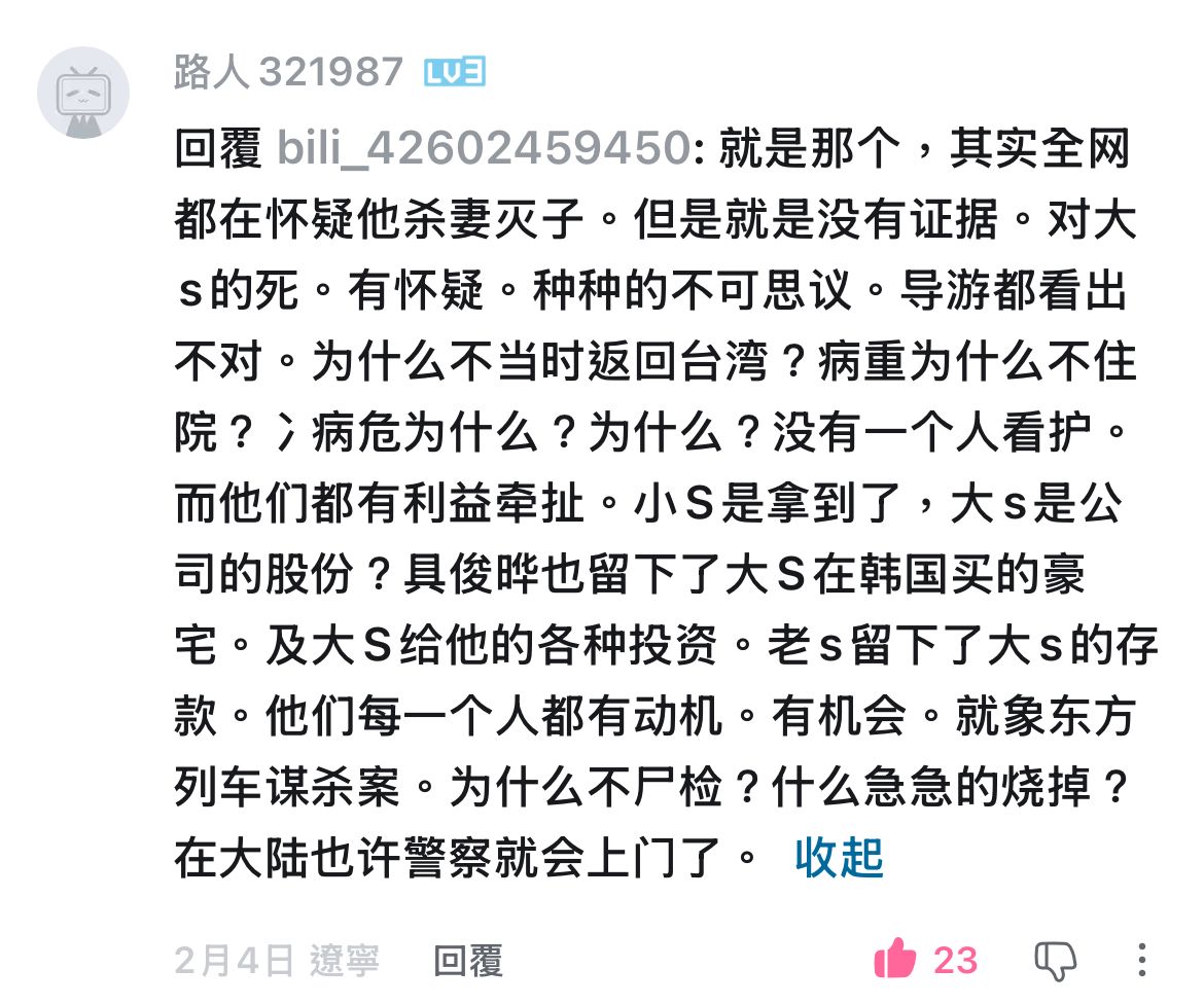 對大s的死。有懷疑。種種的不可思議。導遊都看出不對。為什麼不當時返回台灣?病重