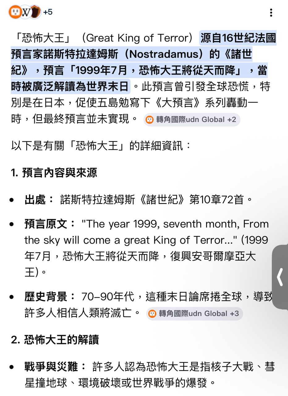 看了看最近的國際情勢,然後偽基百科了一下突然驚覺:莫非諾斯特拉達姆斯所預言的事
