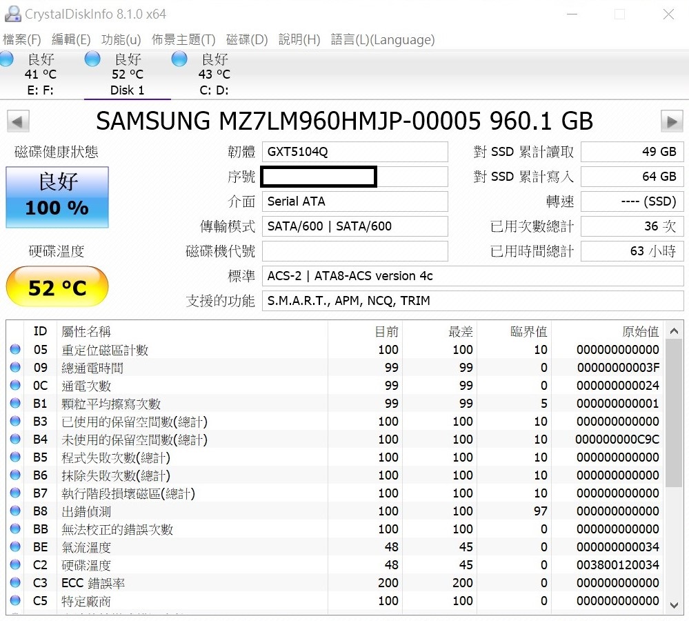 [賣/新竹/皆可] Samsung SSD PM863a 960GB SATA