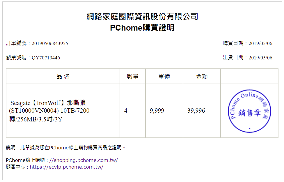 2019/05/06 (pchome購) 3年保 *4