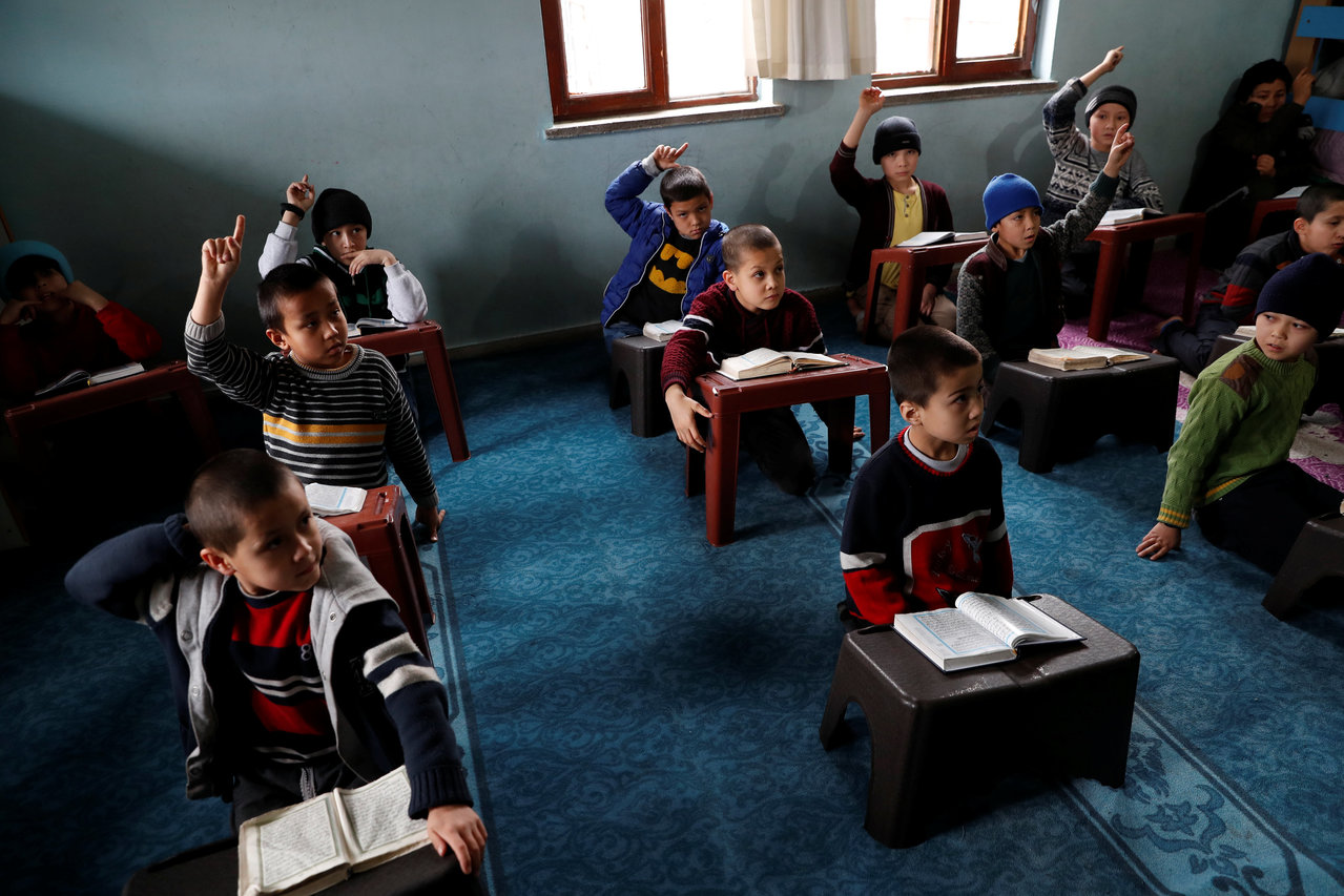 ,之後落地生根。圖為土耳其的伊斯蘭學校(madrasah)裡,正在上可蘭經課的維吾爾學