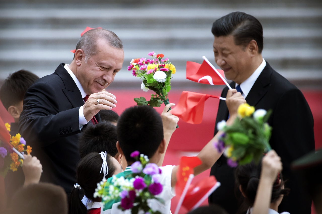 得十分尷尬。圖為今年7月,土耳其總統厄多安出訪中國,中國國家主席習近平歡迎。 圖