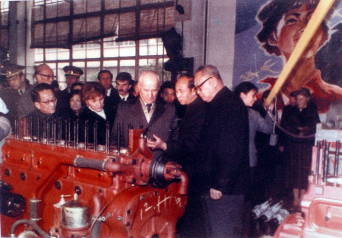 1982年,第一位訪問中國的土耳其總統埃夫倫(Kenan Evren,中),參觀中國「上海柴