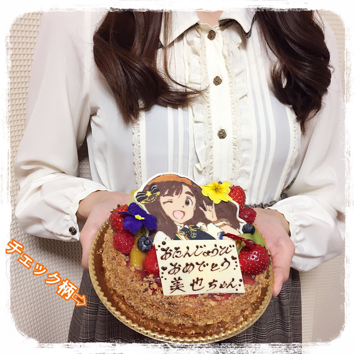 「今天是快樂的生日喔~因為從早上開始就有滿滿的幸福,所以也要分給製作人