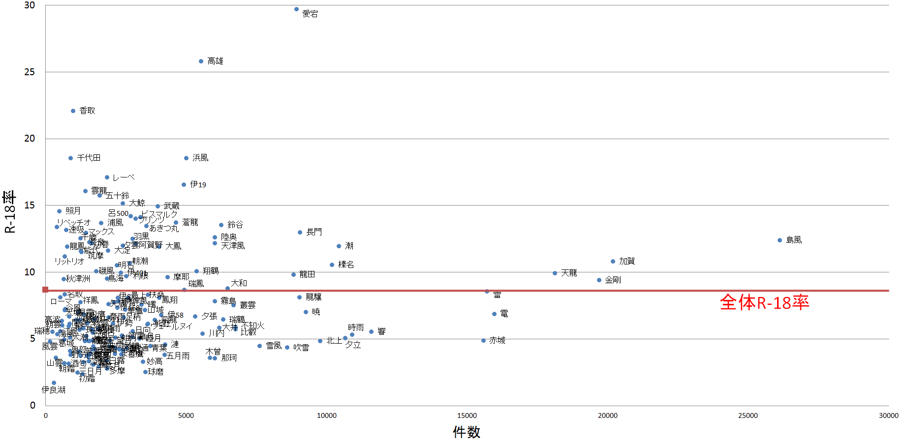 [閒聊] 艦娘搜尋數量 vs R18率