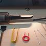 要準備小剪刀,將螺絲孔位置進行開孔,將其消音棉放置