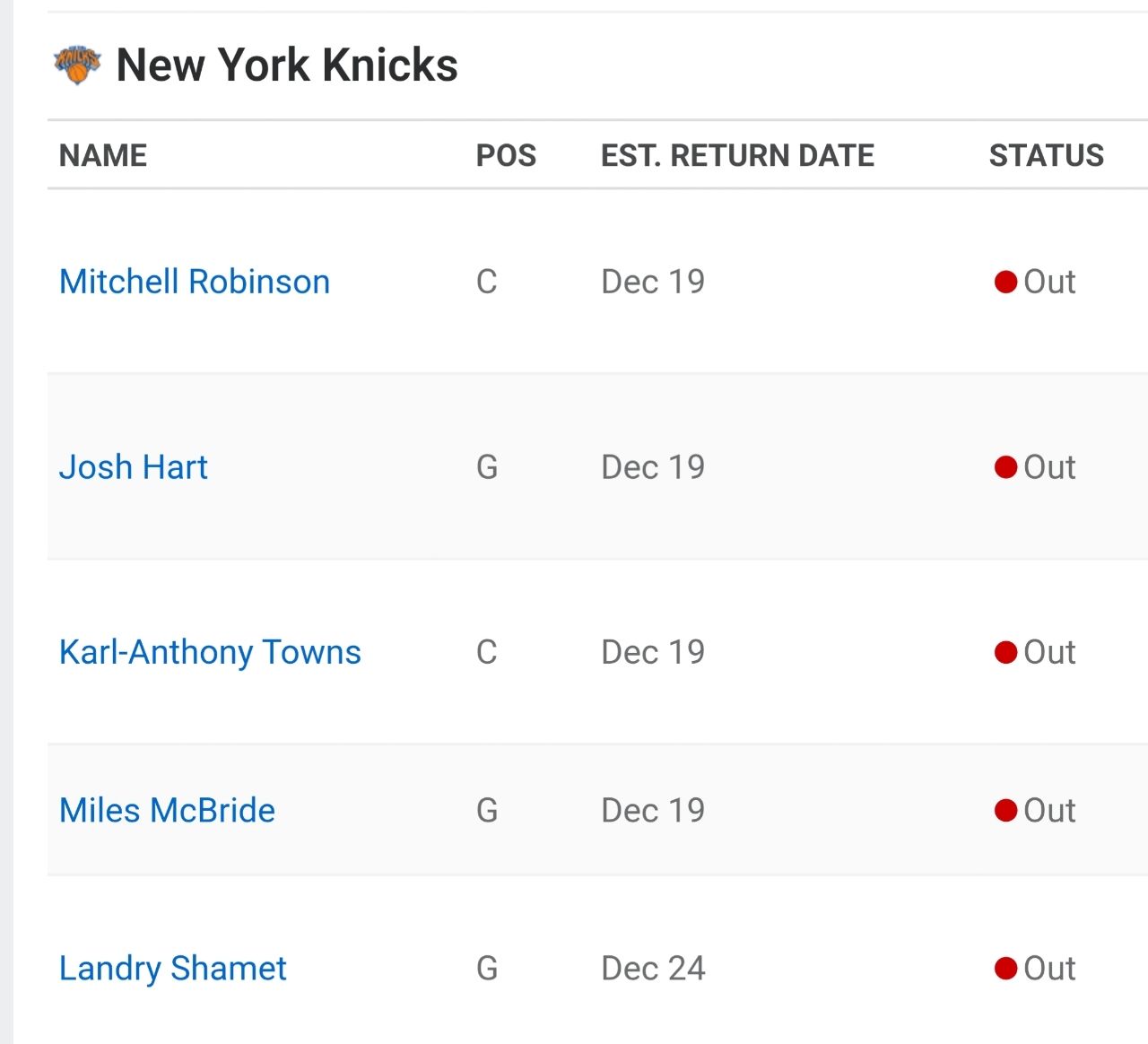 │ │ Knicks │