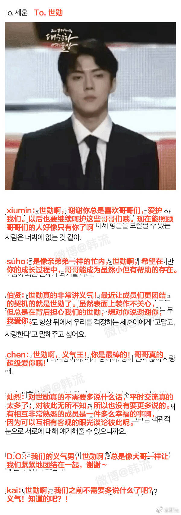 [閒聊] EXO成員之間真的互相感到自豪