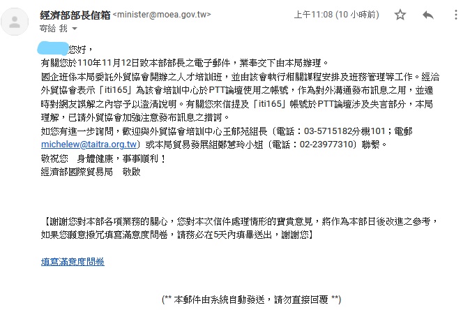 2.經濟部國際貿易局的回覆信件