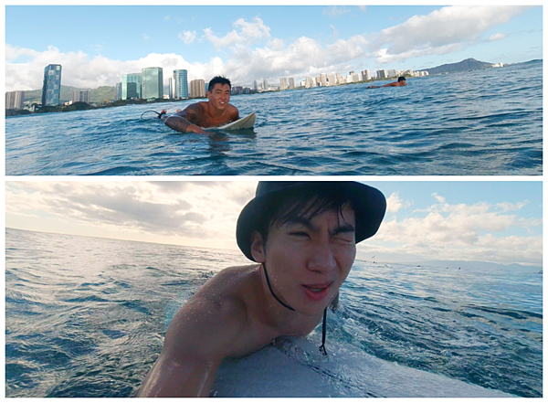 所以很常跟我的室友們一起拿著衝浪板去衝浪