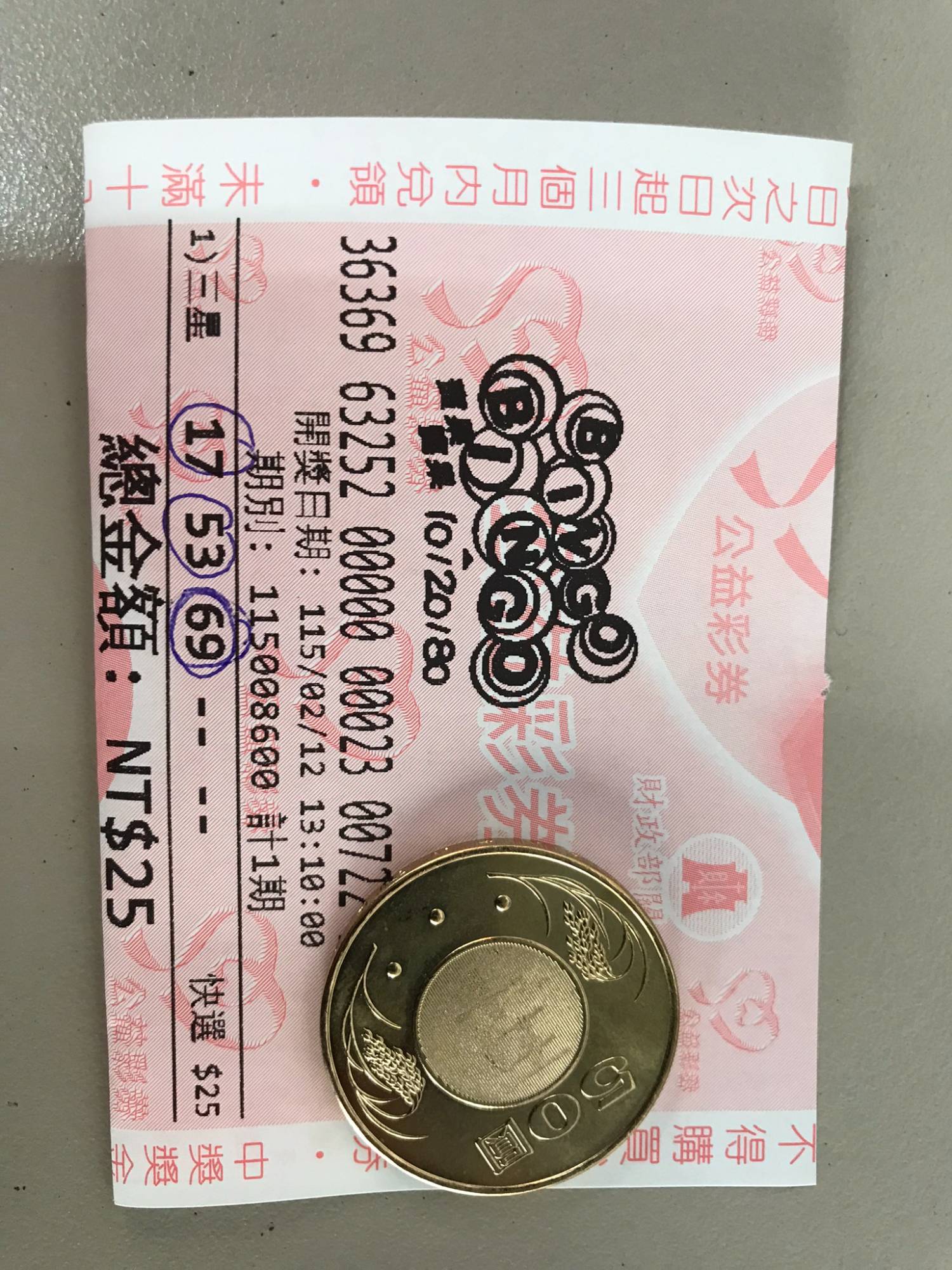 去店裡兌獎,然後有預感要買賓果三星電選一倍一期